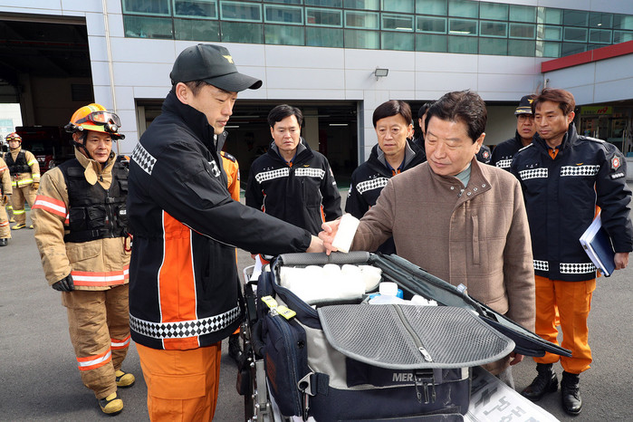 안상수 시장은 "설연휴에도 마음놓고 쉬지도 못하고 시민의 생명과 재산을 지키기 위해 애쓰는 여러분의 노고에 정말 감사드린다"면서 고마움을 표한 뒤 "설 연휴 기간 동안 한 건의 화재를 비롯한 재난사고가 발생하지 않도록 특별경계근무 등 안전대책 추진에 만전을 기해주기 바란다"고 주문했다.