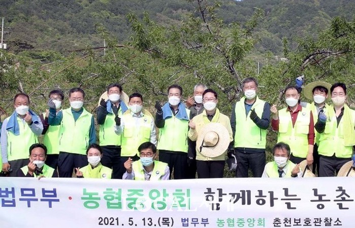 농협(회장 이성희)은 농번기를 맞아 법무부와 합동으로 13일 강원도 춘천시 동내면 소재 복숭아 농장에서 농촌일손돕기를 실시했다고 밝혔다.