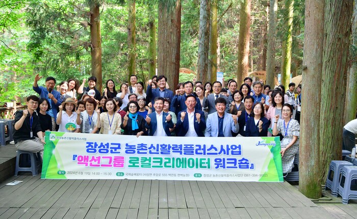 [로컬세계 = 이남규 기자]전남 장성군 ‘농촌신활력플러스사업’ 4기 활동모임체 9개 그릅과 사업단이 19일 축령산 편백숲에서 공동 연수를 실시했다.