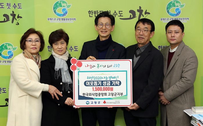 한국외식업중앙회 고창군지부(지부장 이선덕)도 23일 고창군청을 찾아 도움의 손길이 필요한 이웃을 위해 써달라며 성금 150만원을 기탁했다.