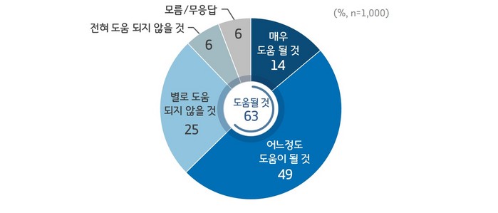 ‘지역화폐 도입이 지역경제 활성화에 도움이 될 것으로 보느냐’는 질문에는 응답자의 과반(도민 63%, 가맹점주 51%) 이상이 ‘도움 될 것’이라고 긍정적 답변을 했다.