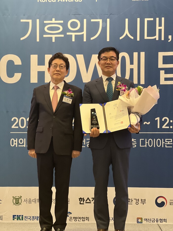 ESG는 환경을 보호하고 사회적 책임을 다하며 투명한 지배구조를 유지하는 것을 말하는 것으로 ESG 코리아 수상은 한스경제 및 ESG행복경제연구소 주최로 환경(E), 사회(S), 지배구조(G) 3분야 106개 항목에 대하여 지속가능한 발전과 사회적 책임을 추구하는데 우수한 성과를 낸 지자체 및 기업에게 시상된다.