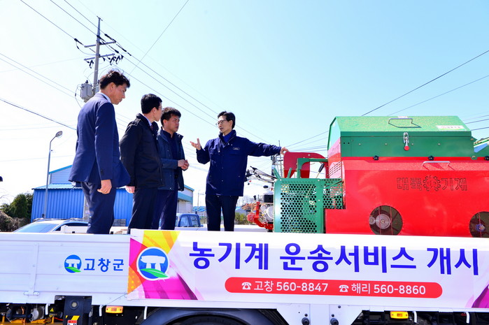 고창군은 이날 북부권 농기계 임대사업소를 개소하면서 동서남북 농기계 임대 및 배송서비스가 모두 완성됐다. 트랙터, 굴삭기 등 전문 농기계가 단 15분 만에 집 앞까지 배달된다. 군은 1톤 특수차량을 3대 확보해 농민들이 3일전 농기계를 예약하면 전문 운송차량을 이용해 영농현장까지 직접 배달해준다.