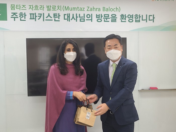 농협(회장 이성희) 경제지주 계열사인 NH농협무역이 29일 뭄타즈 자흐라 발로치(Mumtaz Zahra Baloch) 주한 파키스탄 대사와 면담을 갖고 농업용 자재, 농식품 무역관련 상호 협력방안을 논의했다.