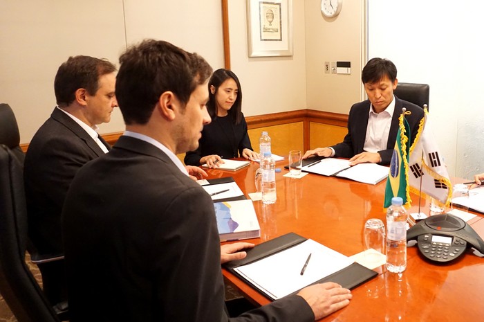 | ▲9일 김영문 관세청장(오른쪽)이 브라질 등 중남미 3개국 관세청장과 양자면담을 개최했다.(관세청 제공) |