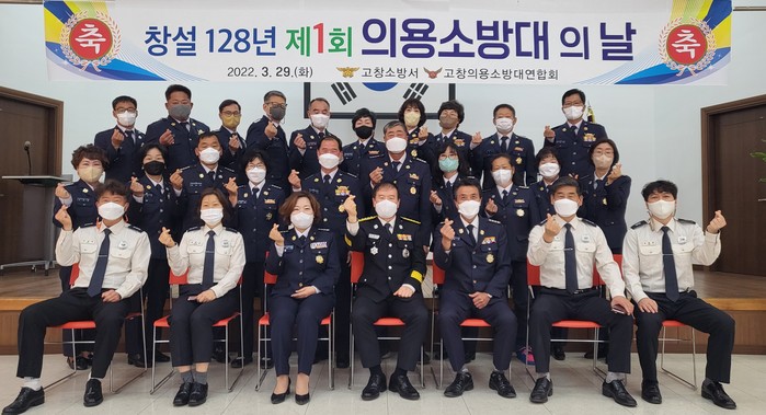 [로컬세계 김경락 기자]전북 고창소방서(서장 라명순)는 29일 '창설 128년 제1회 의용소방대의 날'을 맞아 국민과 함께한 100년의 역사 조명과 변화하는 시대에 부흥하는 의용소방대원의 숭고한 봉사와 희생정신을 기리는 기념식을 가졌다.