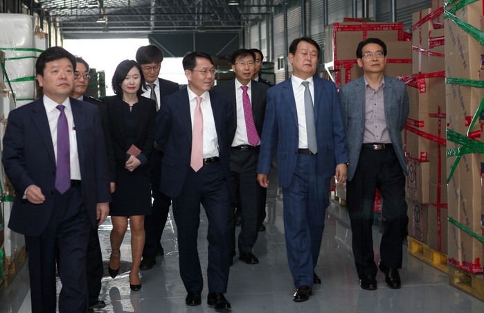 | ▲해외 이사화물 장치들을 둘러보고 있는 천홍욱 관세청장.(왼쪽 두번째) |