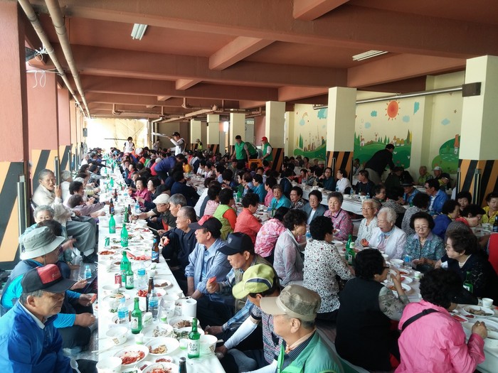 [로컬세계 맹화찬 기자]부산 남구 용당동주민센터는 지난 28일 용당 초등학교에서 주민자치위원회 주최, 용당동 새마을단체 주관 및 관내 업체의 후원으로 어르신 500여 명을 모시고 행복나누기 사업으로 경로잔치 행사를 개최했다.