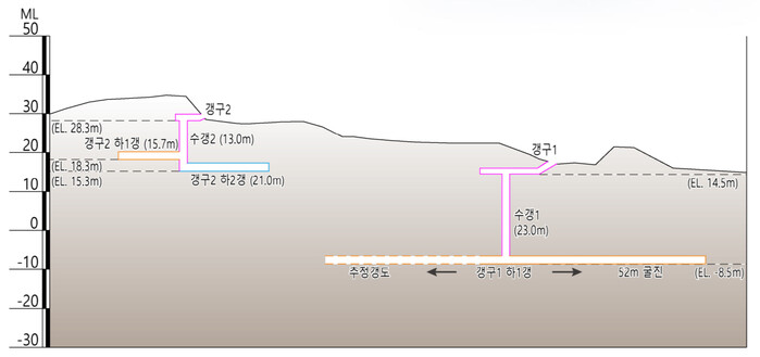 | ▲ 고양광산 지반안정성 정밀조사 및 실시설계 용역 추진 – 2개의 갱구 |