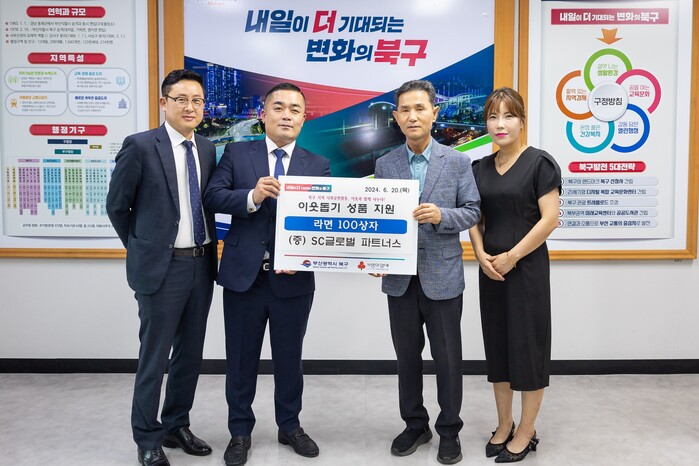 [로컬세계 부산=김민호 기자] SC글로벌파트너스가 지난 20일 부산 북구를 찾아 라면 100상자를 기부하며 지역 내 어려운 이웃을 위한 나눔을 실천했다.