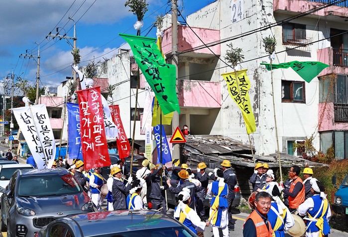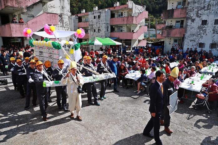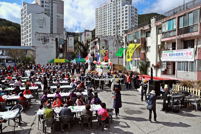 [로컬세계 박상진 기자]강원 태백시는 19일 장성동 화광아파트 앞에서 화광아파트 장례식을 거행했다. 이에 따라 태백시 최초의 고급형 아파트로 입주당시 큰 인기를 끌었던 화광아파트가 도시재생사업을 위해 40년의 세월을 뒤로 하고 역사속으로 사라졌다.