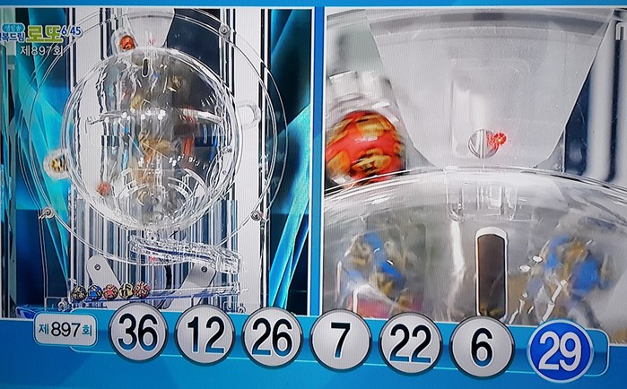 8일 방송된 MBC ‘생방송 행복드림 로또6/45’ 제897회 추첨결과 1등 당첨번호는 ‘6, 7, 12, 22, 26, 36’ 이며 보너스 번호는 ‘29’로 발표됐다.