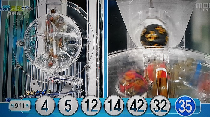 16일 방송된 MBC ‘생방송 행복드림 로또6/45’ 제911회 추첨결과 1등 당첨번호는 ‘4, 5, 12, 14, 32, 42’ 이 보너스 번호는 ‘35’로 발표됐다.
