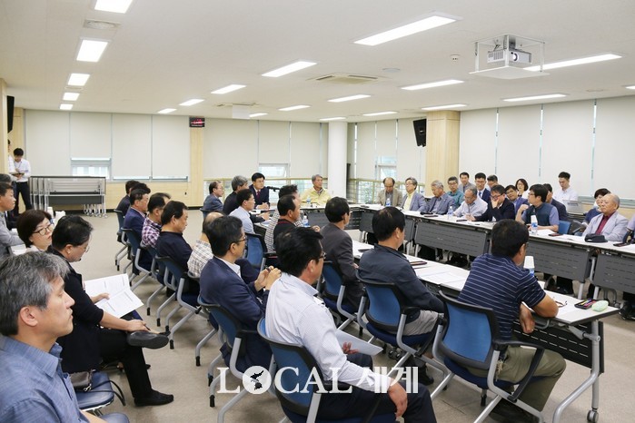| ▲ 회의 참석자들이 조치원읍 소재지 종합정비사업 추진관련에 대해 설명을 하고 있다. 오영균 기자. |