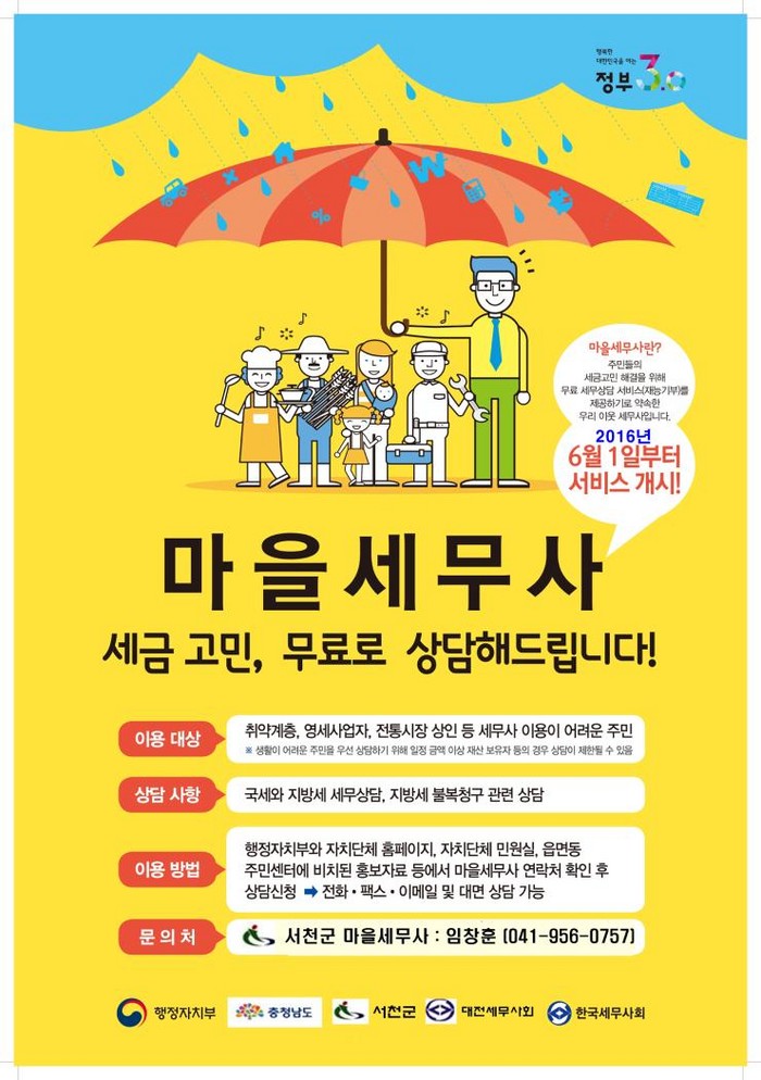 세무상담을 원하는 주민은 서천군 마을세무사(041-956-0757)로 연락하면 된다.