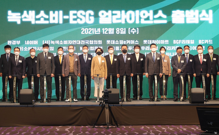 KB국민은행(은행장 허인)은 8일 녹색소비 생태계 조성과 ESG 활동에 적극 동참하기 위해 환경부가 주최하는 ‘녹색소비-ESG 얼라이언스’ 협약식에 참여했다고 밝혔다.