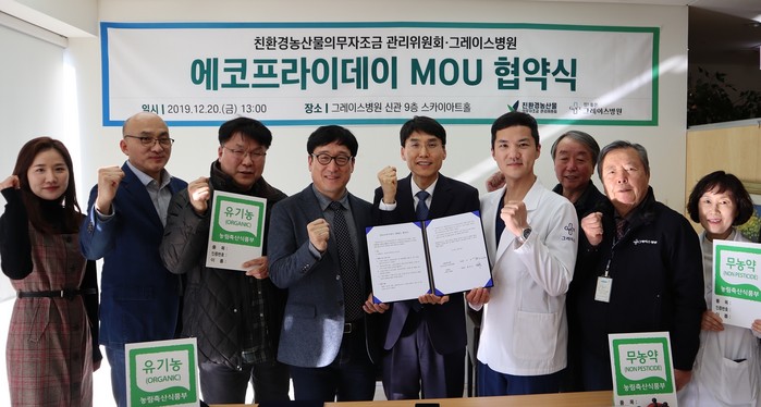 이날 협약식에는 최낙현 농림축산식품부 친환경농업과 과장, 강용 친환경농산물자조금 위원장, 장익진 그레이스병원 의료원장 등 관계자 10여명이 참석했다.