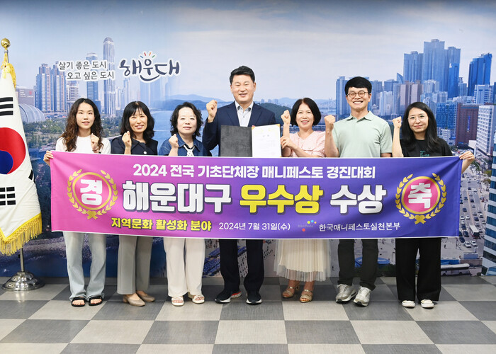 [로컬세계 부산=맹화찬 기자]부산 해운대구가 지난 7월 30일~31일 인제대학교 김해캠퍼스에서 열린 ‘2024 전국 기초단체장 매니페스토 우수 사례 경진대회’에서 우수상을 받았다.
