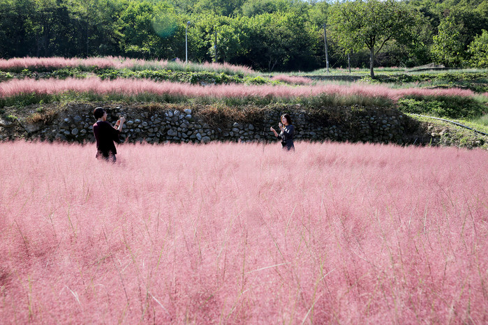 이제 막 피어나기 시작한 핑크뮬리는 10월이면 활짝 피어나 관광객들을 유혹할 것이다. ‘우리 꽃길을 걸어요’, ‘매일매일 기뻐해, 감사해’, ‘오늘 참 예쁘다’ 등 가을 감성을 자극하는 멋진 문구들이 핑크빛 바다에서 관광객들을 기다릴 것이다.