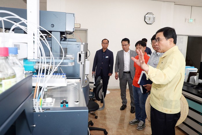 허 시장은 또 “조류독성물질로 알려진 마이크로시스틴의 경우, 원수에 0.3㎍/L 검출된 이상 정수처리 공정을 철저히 해 시민들에게 안전한 수돗물을 공급하고, 조류독성물질 분석 장비로 조속히 마이크로시스틴을 분석 가능하게 해 수돗물에 대한 시민들의 불안을 해소할 수 있도록 노력해 달라”고 당부했다.
