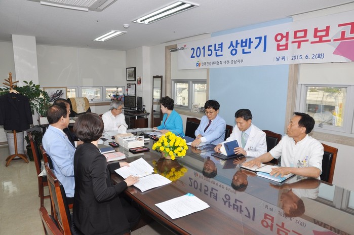 [로컬세계 조윤찬 기자]한국건강관리협회 조한익 회장은 2일 건협 대전충남지부를 방문해 정순덕 지부장으로부터 2015년도 상반기 업무 보고를 받았다.
