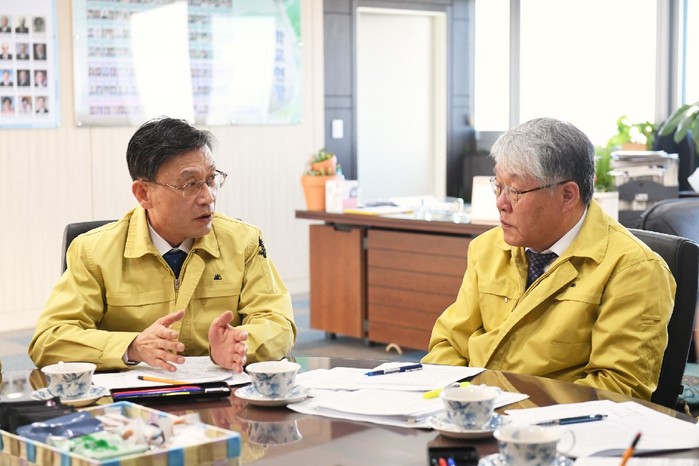 [로컬세계 김병민 기자]정하영 시장이 3일 오전 김포교육지원청을 방문, 정경동 교육장과 신종 코로나 바이러스 확산방지 대책을 논의했다.