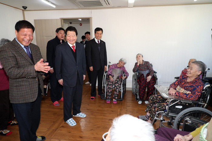 또한 마산노인전문요양원 시설종사자와의 간담회 자리에서 “우리사회가 밝아질 수 있도록 빛을 밝혀주는 분들이 바로 그대들”이라며 고마움을 표시하면서 “어려운 여건이지만 자식이 부모를 봉양하는 그 마음 그대로 어르신들을 보살펴줄 것”을 당부했다.