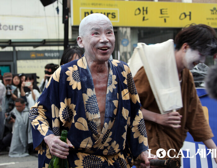 ▲2024 춘천마임축제 개막식 공연을 마친 마이미스트 오이카도 이치로 (사진=전경해 기자) |