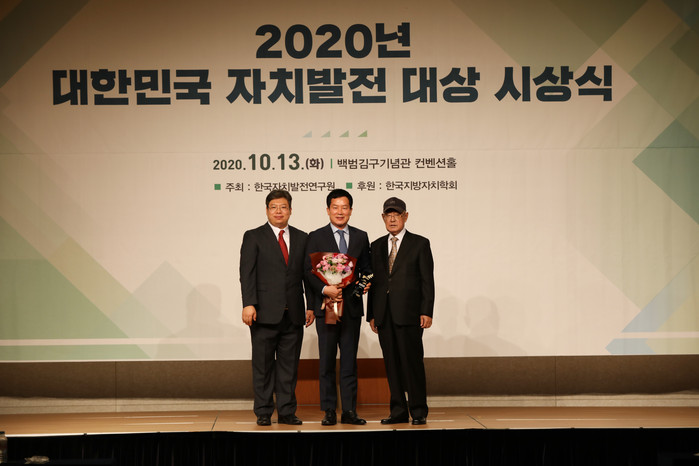 대한민국 자치발전 대상은 한국자치발전연구원(원장 김안제, 서울대 명예교수)이 주최하고 한국지방자치학회가 후원한다. 오늘 시상식은 코로나19 확산 방지를 위해 수상자만 식장에 출입하는 등 정부의 방역지침을 철저히 준수한 가운데 안전하게 열렸다. 축하객들이 볼 수 있도록 유튜브로 행사를 생중계하기도 했다.