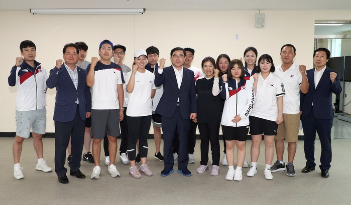 이 자리에는 창원시청 소속 5명을 포함해 국가대표 선수단 25명이 참석했으며, 윤덕하 국가대표 감독과 김민지, 엄지원, 송수주 창원시청 소속 선수에게 각각 격려금이 전달됐다.