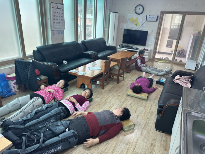 ▲ 통증 치료 공기압 물리치료를 받고 있는 주민들 (사진=화순군 보건소) |