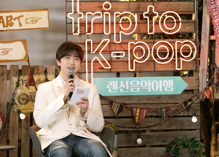 ▲19일 저녁 7시 한국콘텐츠진흥원 CKL스테이지에서 진행된 '랜선음악여행 - 트립 투 케이팝'에서 B1A4 산들이 MC를 맡아 진행하고 있다.(한국콘텐츠진흥원 제공) |