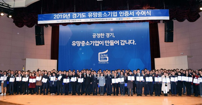 | ▲2019년 경기도 유망중소기업 인증서 수여식 개최.(경기도 제공) |