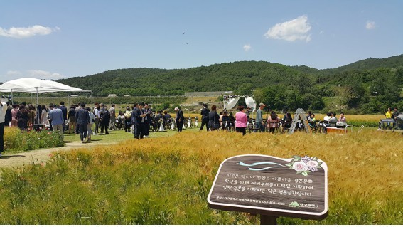 이에 따라 지난 14일 ‘하중도 청보리밭 작은 결혼공간’에서 결혼식이 열렸다. 이어 오는 20일에도 같은 장소에서 두 번째 ‘작은 결혼식’이 진행된다.