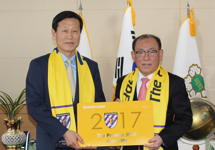 [로컬세계 고현성 기자]송재천 광양시의회 의장이 정현복 광양시장에 이어 2017시즌 카드를 구입하며 전남드래곤즈 프로축구붐 조성에 동참했다.
