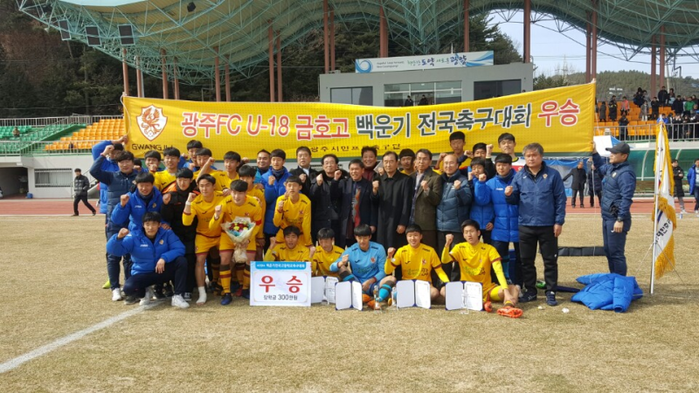 광주 U-18(금호고)는 26일 오전 11시 광양공설운동장에서 열린 제 19회 백운기 전국 고교축구대회 결승전에서 성남FC U-18(풍생고)를 승부차기 접전 끝에 4:2로 누르고 대회 우승을 차지했다.