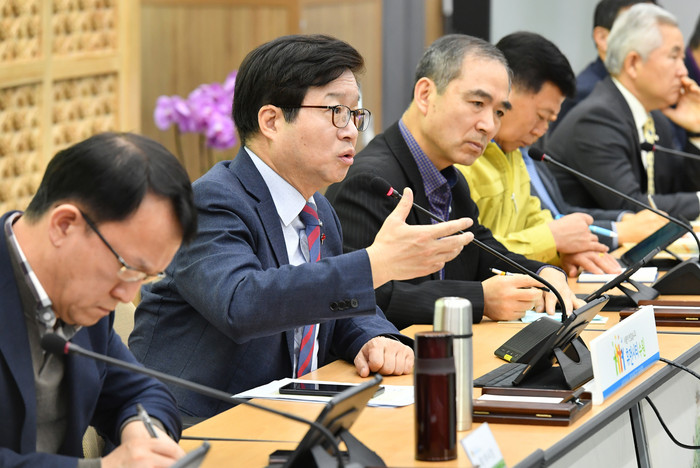 | ▲염태영 시장이 확대간부회의에서 발언하고 있다.(수원시 제공) |