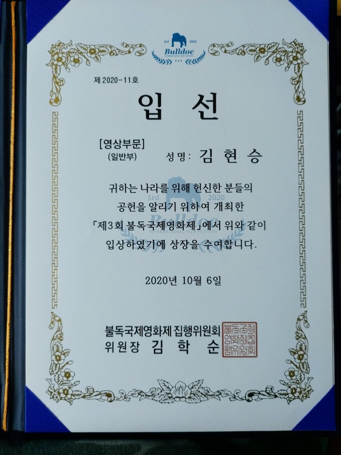 [로컬세계 맹화찬 기자]부산 금정소방서(서장 김우영)는 지난 6일 전쟁기념관에서 열린 제3회 불독국제영화제에서 김현승 소방교가 영상부문 일반부에서 입선을 했다고 16일 밝혔다.