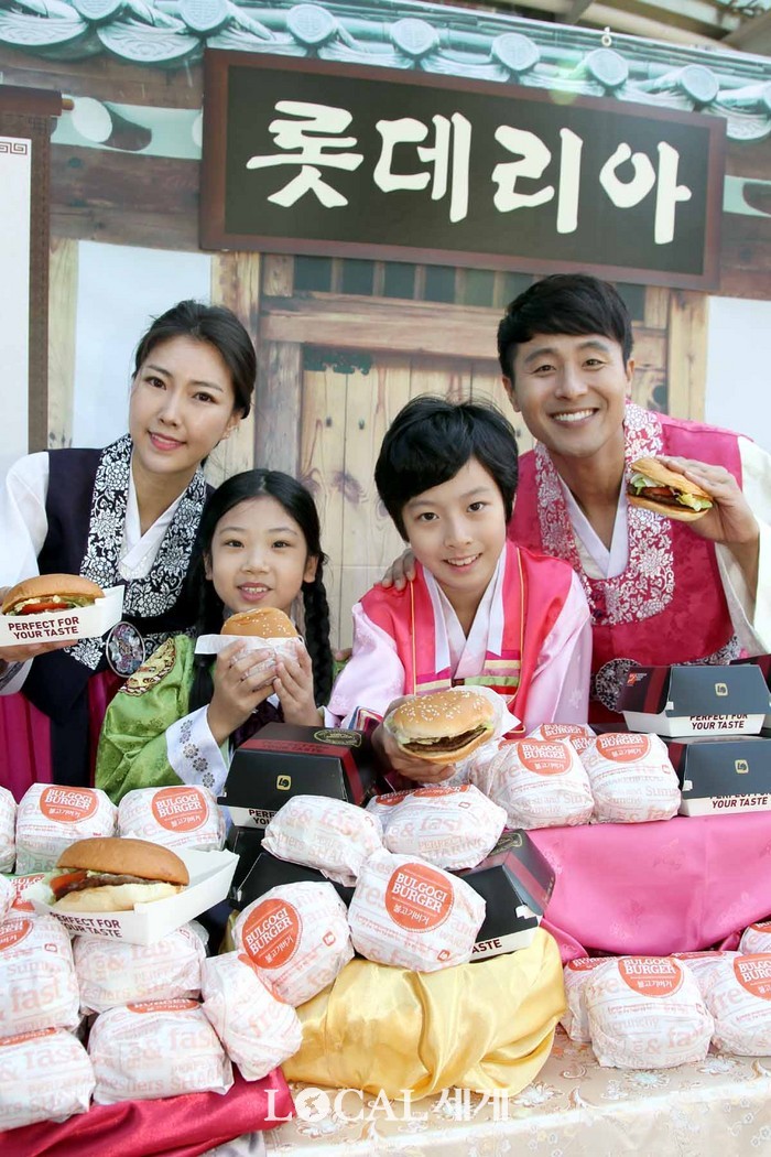 | ▲롯데리아는 28일, 서울 청계광장에서 사진행사와 함께 불고기버거 출시 25주년을 기념해 잔칫상을 차렸다. 롯데리아 한옥집에서 한 가족으로 분한 모델들이 지난 25년간 불고기버거에 보내준 고객 성원에 감사하는 인사를 하고 있다. |
