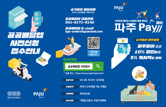 공공배달앱 가맹점 입점은 파주에 사업장을 둔 배달이 가능한 식음료업이면 누구나 가능하다. 참여를 원하는 가맹점은 경기도주식회사를 통해 가입하면 된다.