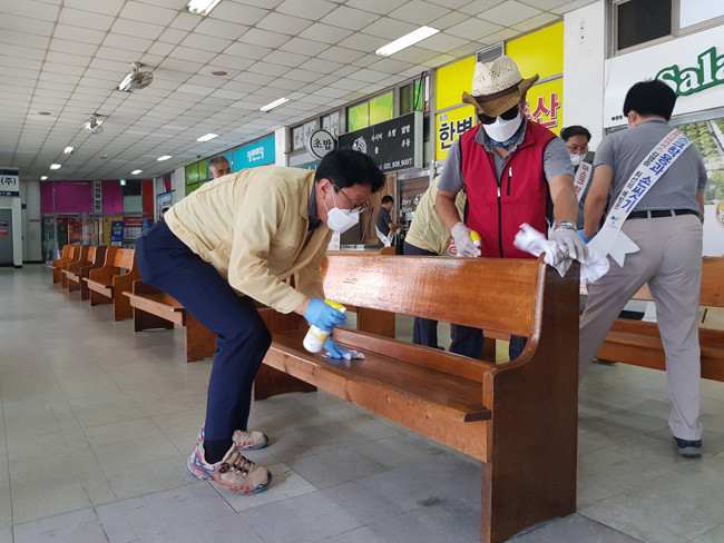 방역 참여자들은 고양시 39개 동 관할 버스정류장, 공원, 개방형화장실 등 다중이용시설 750곳에 대해 마스크를 착용하고 방역수칙을 준수하며 실시했다.