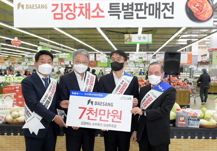 농협(회장 이성희)은 대상(주)가 대.중소기업.농어업협력재단(이하 재단)에 출연한 농어촌상생협력기금 7000만원을 재원으로 김장채소 소비촉진 상생마케팅 할인 행사를 진행한다.