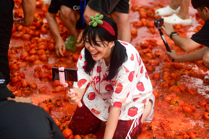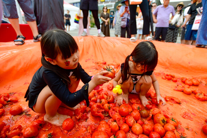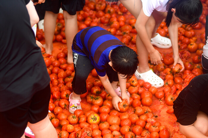 2024 화천토마토축제 이틀쨰인 2일, 사내면 사창리 문화마을에 마련된 축제장에서 관광객들이 '황금반지를 찾아라' 이벤트를 만끽하고 있다.(사진=화천군 제공)