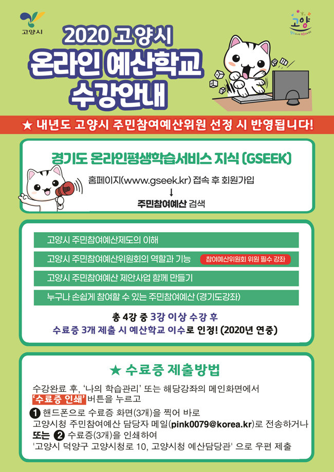 [로컬세계 강영한 기자]경기 고양시(시장 이재준)가 시행 중인 주민참여예산 ‘온라인 예산학교’가 시민들의 호응을 이끌어내고 있다.