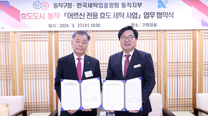구는 지난 27일 동작구청에서 한국세탁업중앙회 동작지부와 어르신 전용 효도 세탁 사업의 원활한 추진을 위한 업무협약(MOU)을 체결했다며 이같이 전했다.