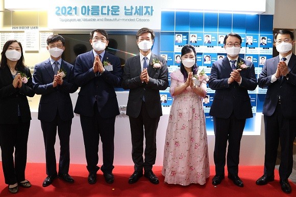 국세청(청장 김대지)은 성실납세와 나눔의 문화 확산을 위해 14일 세종청사 1층 조세박물관에서 ‘아름다운 납세자 홍보관’을 설치하고 ‘2021년 아름다운 납세자 30인’ 제막식을 개최했다.