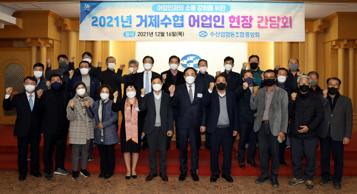 이날 간담회는 ▲엄준 거제수협 조합장 ▲중앙회 부산·경남지역 비상임이사로 활동하고 있는 노동진 진해수협 조합장 ▲최판길 욕지수협 조합장 ▲정연송 대형기선저인망수협 조합장을 비롯해 거제지역 어촌계장, 비상임임원, 한국여성어업인연합회, 정치망협회, 호망협회 등 어업인 40여 명이 참여해 정부의 방역수칙 준수 하에 행사를 진행했다.