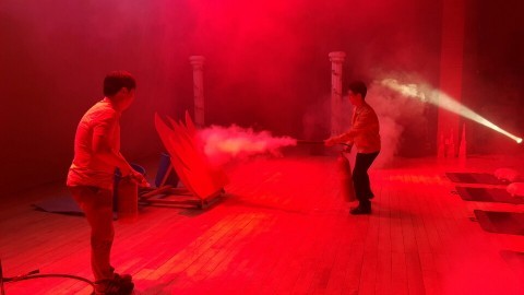 또한 공연 중 화재 발생 모의 상황극을 만들어 자위소방대들의 임무와 시나리오 훈련을 해운대소방서와 함께 진행했으며, 끝으로 소화전과 소화기를 사용하여 화재를 진화하는 소화 훈련 실습도 병행했다.