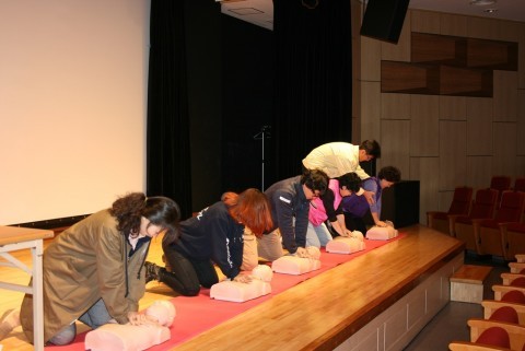 소방 이론 교육에서는 예술의 전당에서 발생한 화재 사건, 공연 중 협연자의 심장마비의 사례에서 직원들의 신속한 화재 진화 및 대피 요령, 심장제세동기 사용에 대한 충분한 숙지 및 침착한 대응의 대표 사례를 시청 후 심폐소생술 실습 및 제세동기 사용을 중점적으로 다루었다.