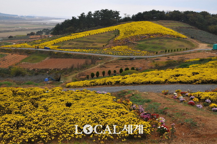 | ▲ 미당문학제가 열리는 전북 고창 미당시문학관 일대 3만 평에 활짝 핀 국화꽃밭 전경. © 로컬세계 |